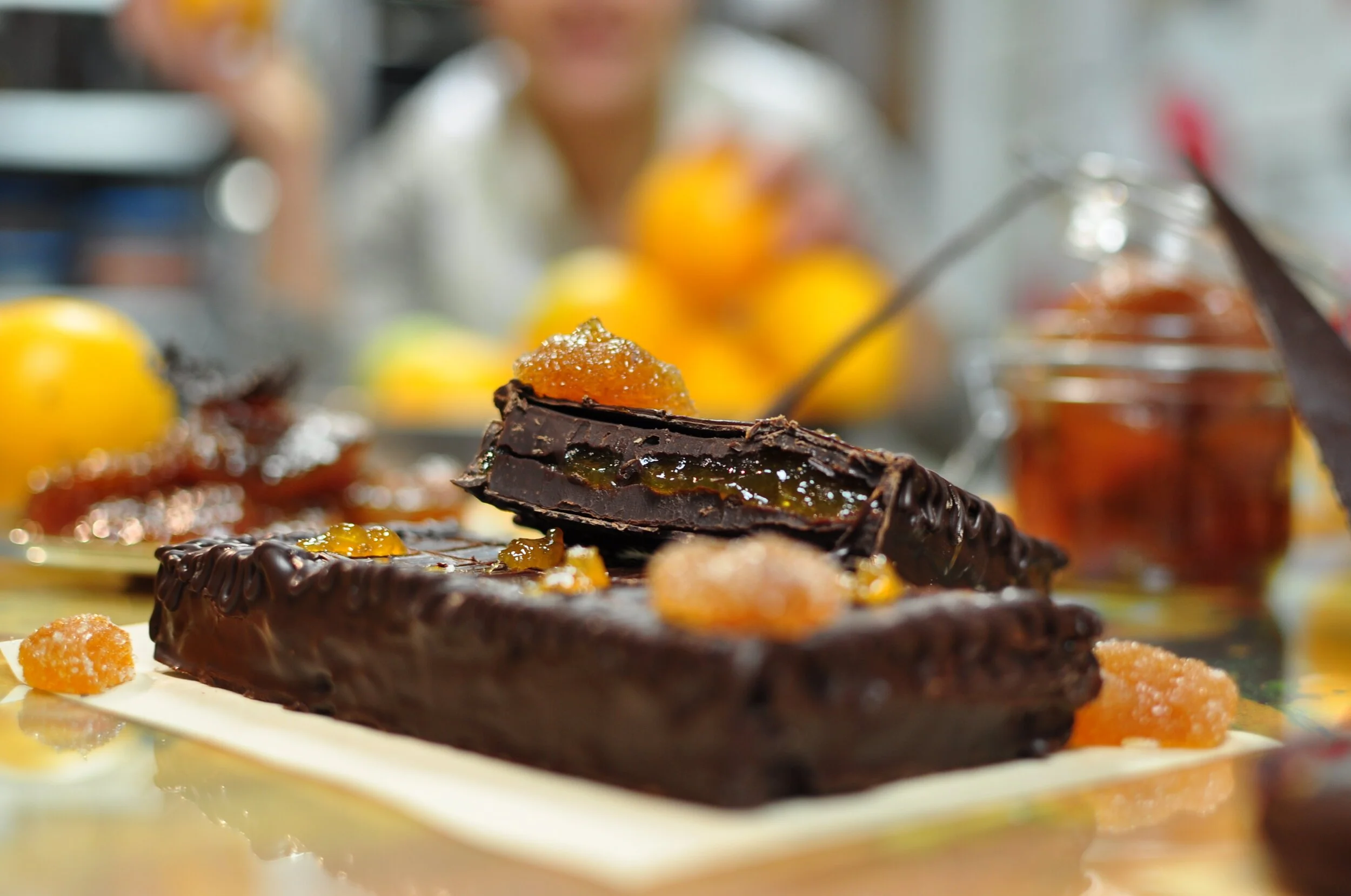 Pour les amateurs de pralinés fruités, tous nos confits sont faits maison dans notre atelier.